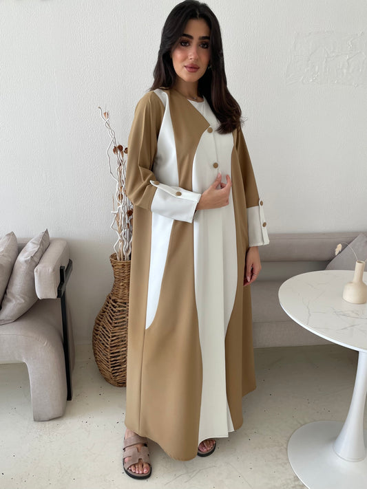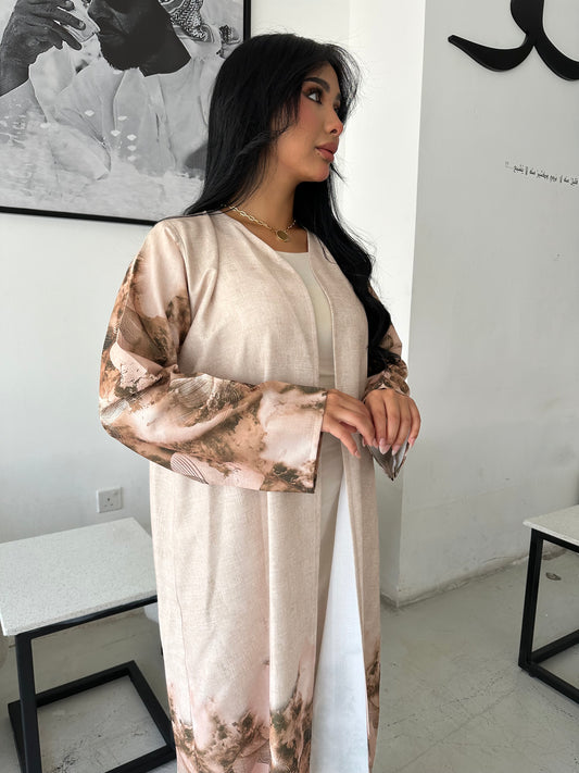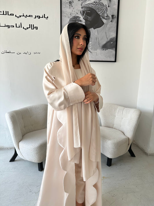 S170 - beige waves abaya in crepe fabric